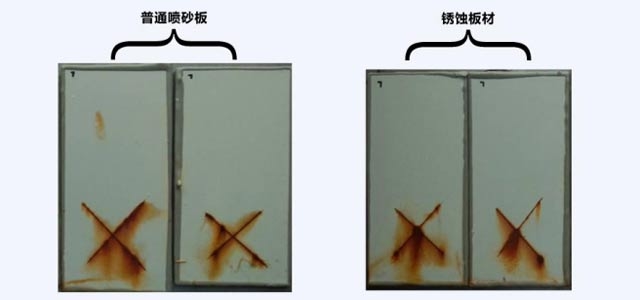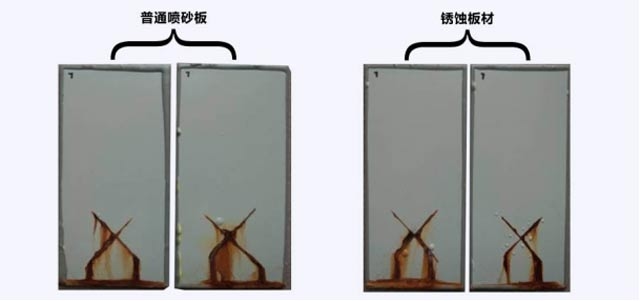 環(huán)氧帶銹防銹涂料耐鹽水測試:1032小時,對銹蝕板材的防腐保護能力與經(jīng)過噴砂處理的防腐程度相同。